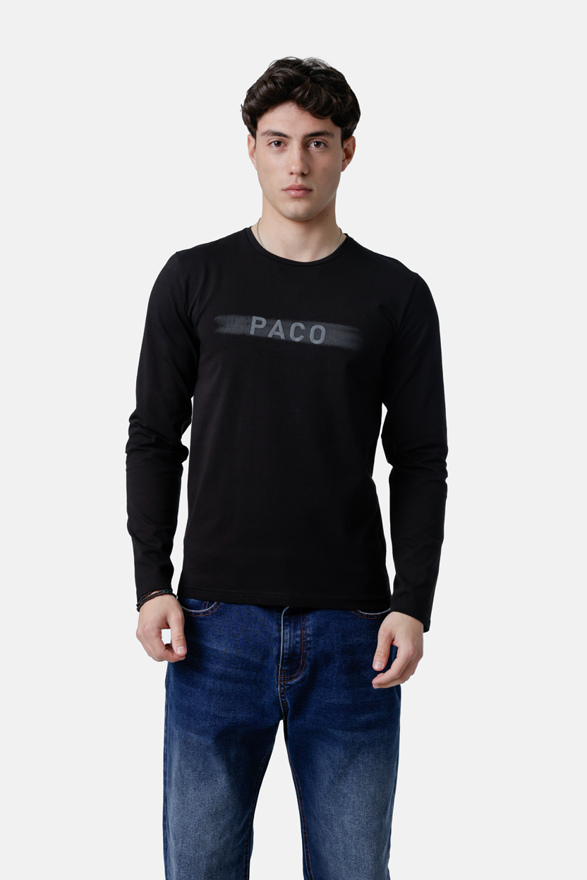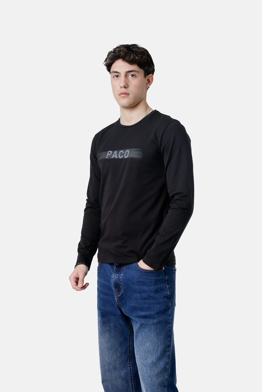 Ανδρική μπλούζα μακό με μακρύ μανίκι, με τύπωμα στο στήθος και κανονική εφαρμογή.