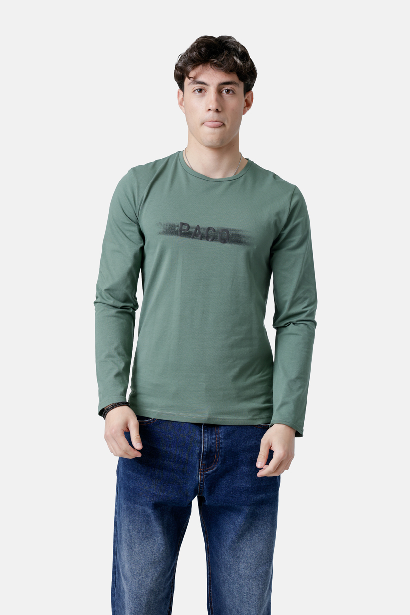 Ανδρική μπλούζα μακό με μακρύ μανίκι, με τύπωμα στο στήθος και κανονική εφαρμογή.