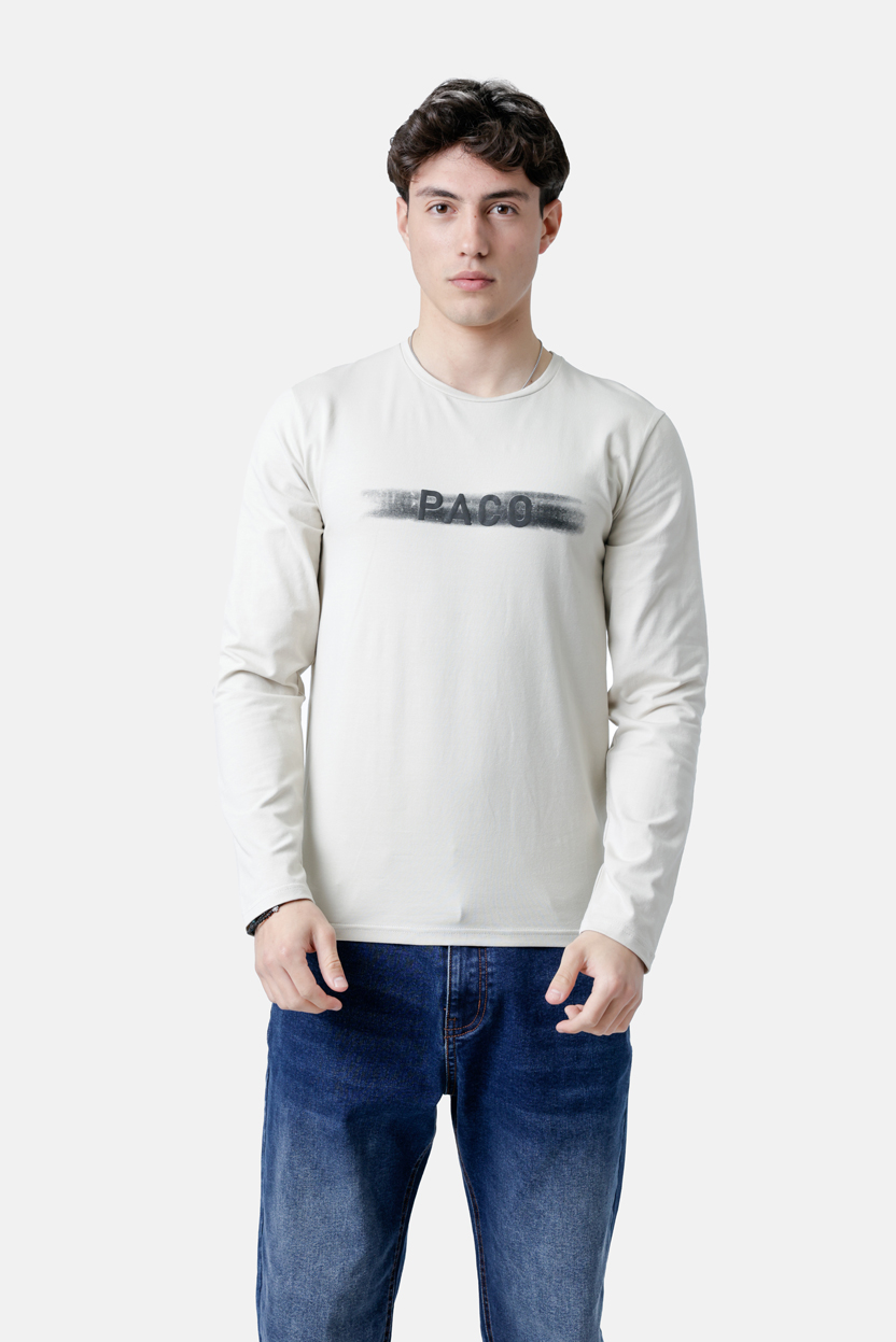 Ανδρική μπλούζα μακό με μακρύ μανίκι, με τύπωμα στο στήθος και κανονική εφαρμογή.