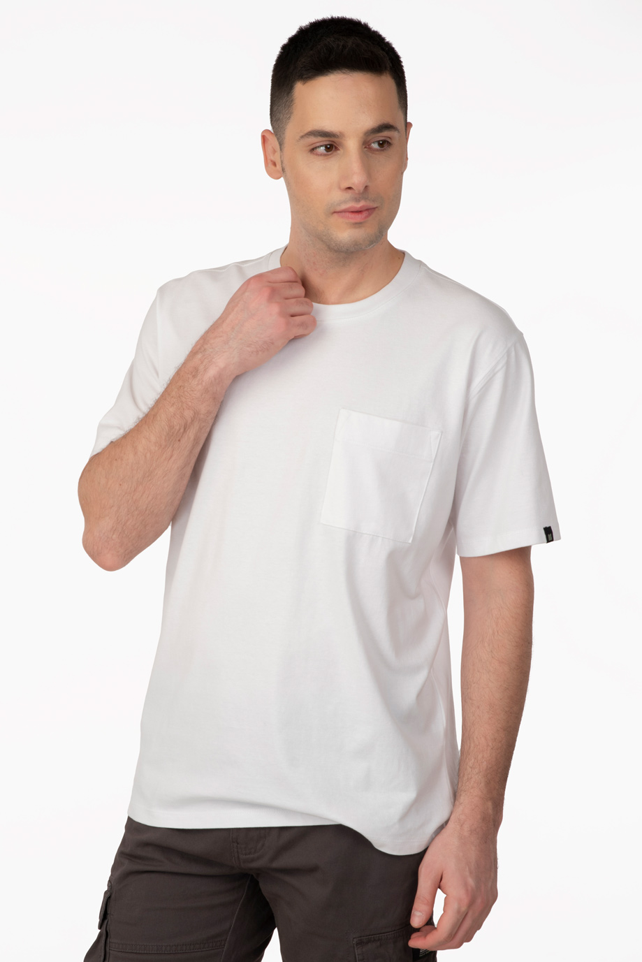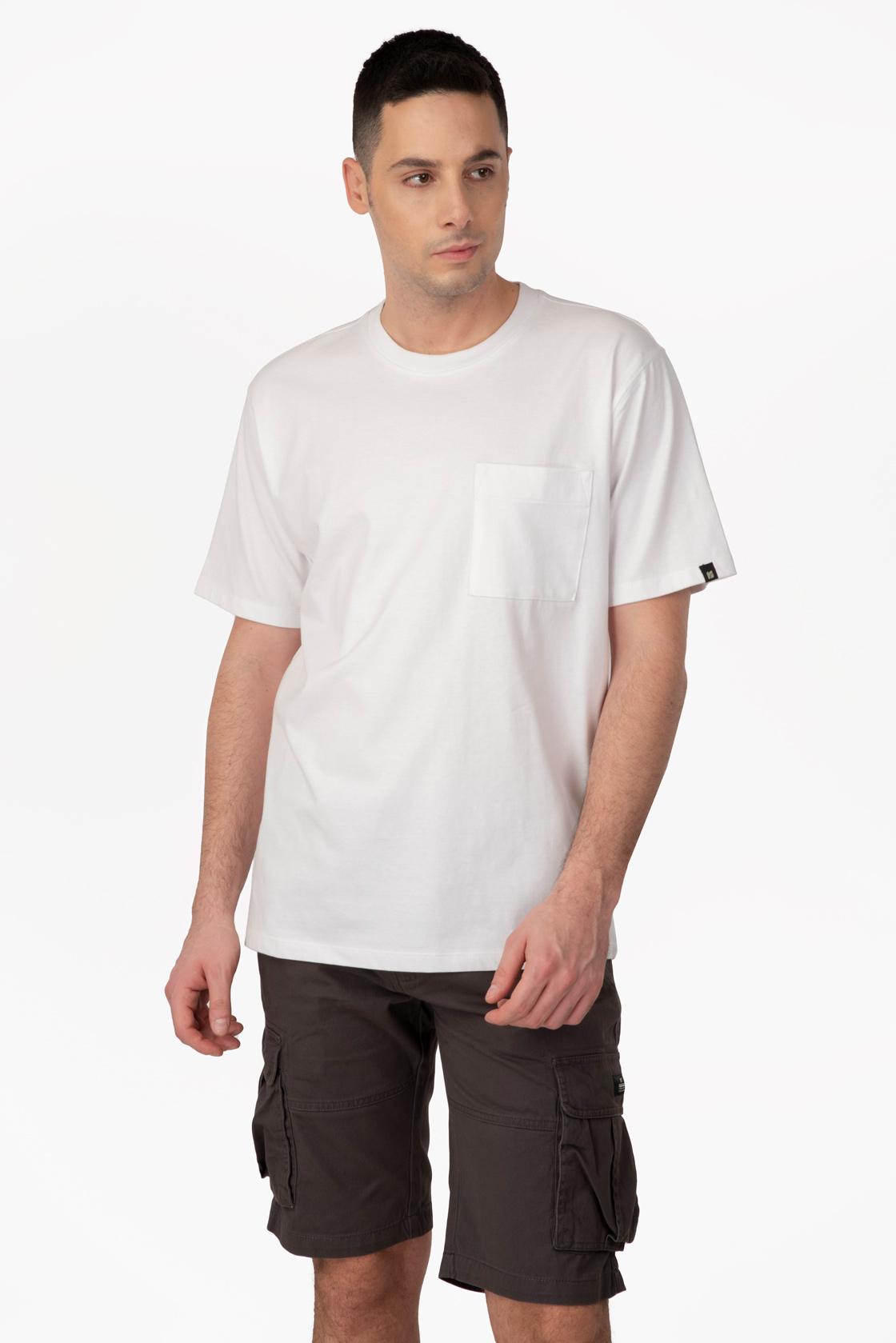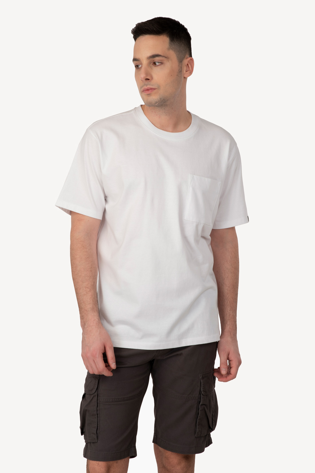 Ανδρική κοντομάνικη μπλούζα μονόχρωμη με τσεπάκι μπροστά και χαλαρή εφαρμογή.