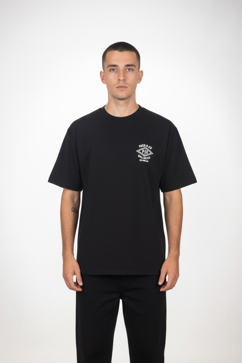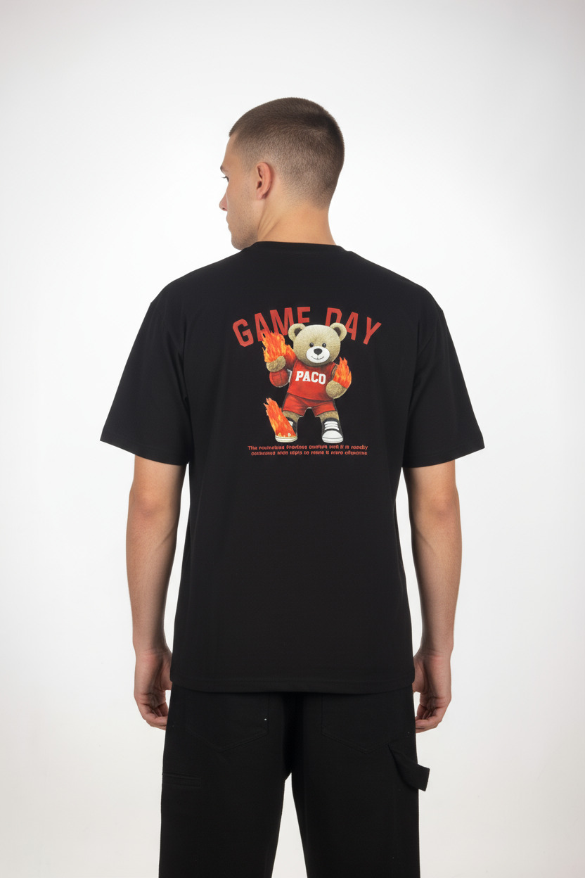 Ανδρική κοντομάνικη μπλούζα με μικρό τύπωμα μπροστά και μεγάλο τύπωμα στο πίσω μέρος και χαλαρή εφαρμογή.