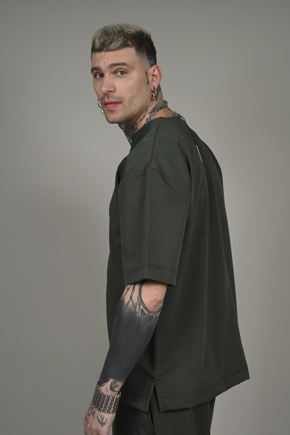 Ανδρική κοντομάνικη μπλούζα με άνοιγμα στη λαιμόκοψη και χαλαρή εφαρμογή.