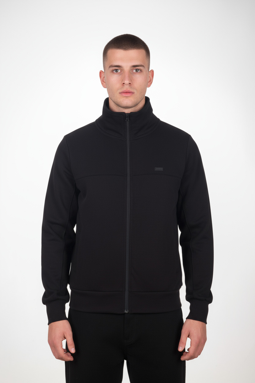 Ανδρική φούτερ ζακέτα με όριο γιακά, κλείσιμο με φερμουάρ, rip τελείωμα στα μανίκια και το κάτω μέρος και κανονική εφαρμογή.