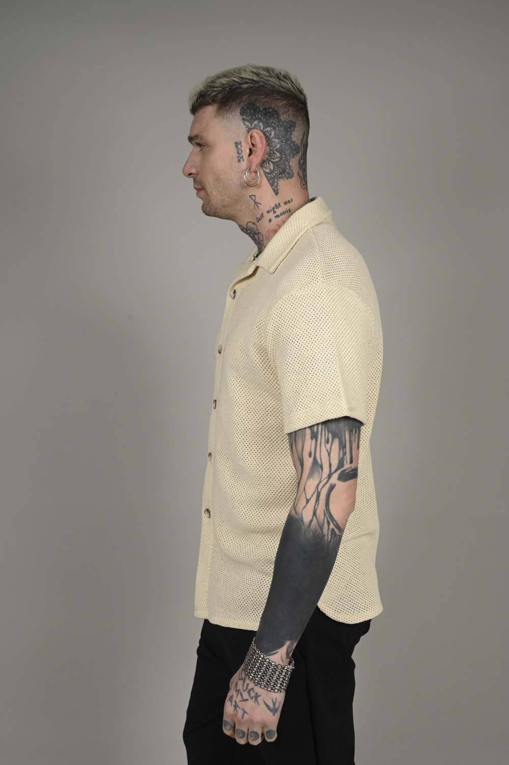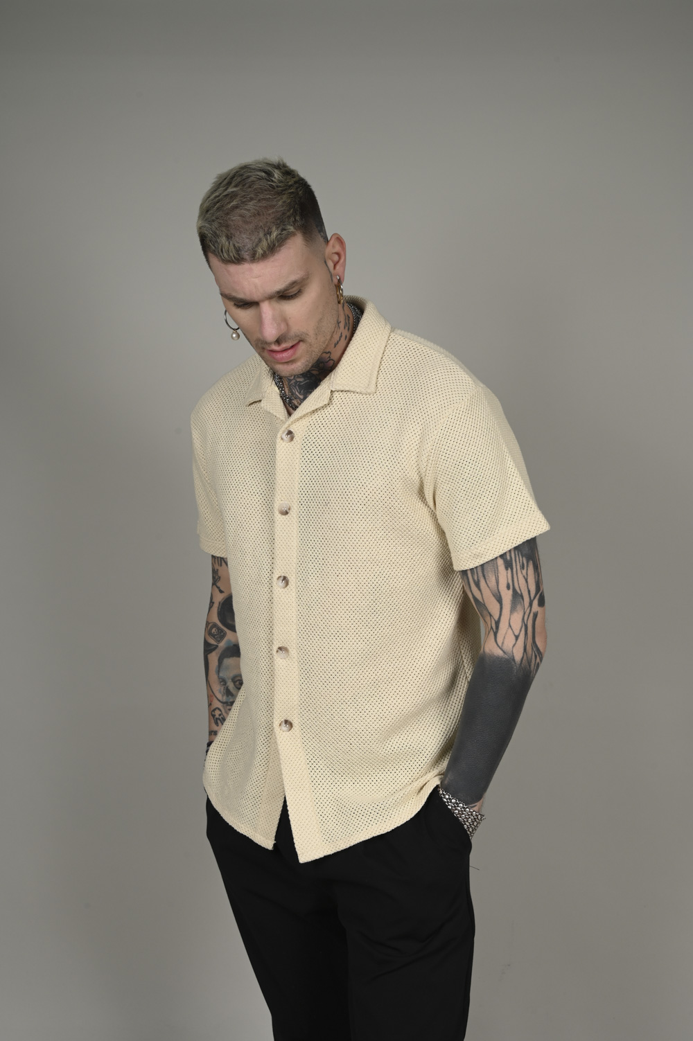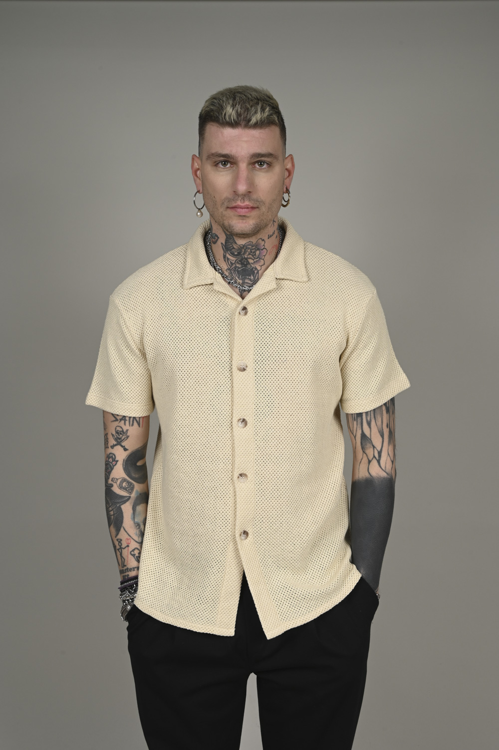 Ανδρικό πουκάμισο με κοντό μανίκι, ανοιχτό γιακά, κλείσιμο μπροστά με κουμπιά και κανονική εφαρμογή. Μπορεί να συνδυαστεί και σαν ζακέτα ανοιχτό με t-shirt.