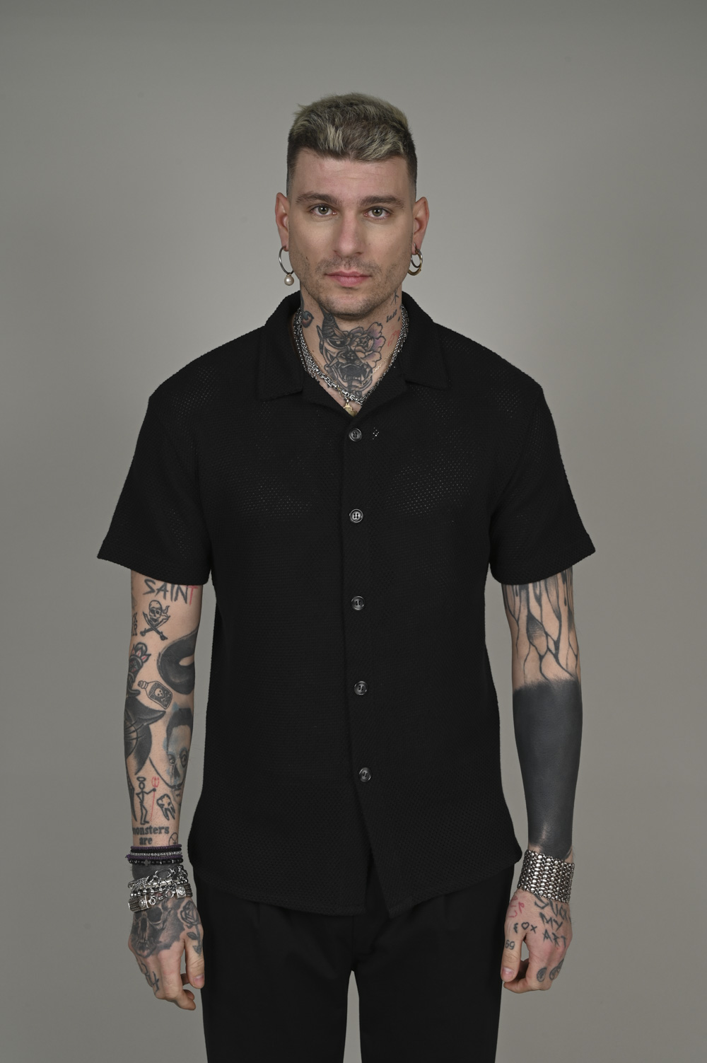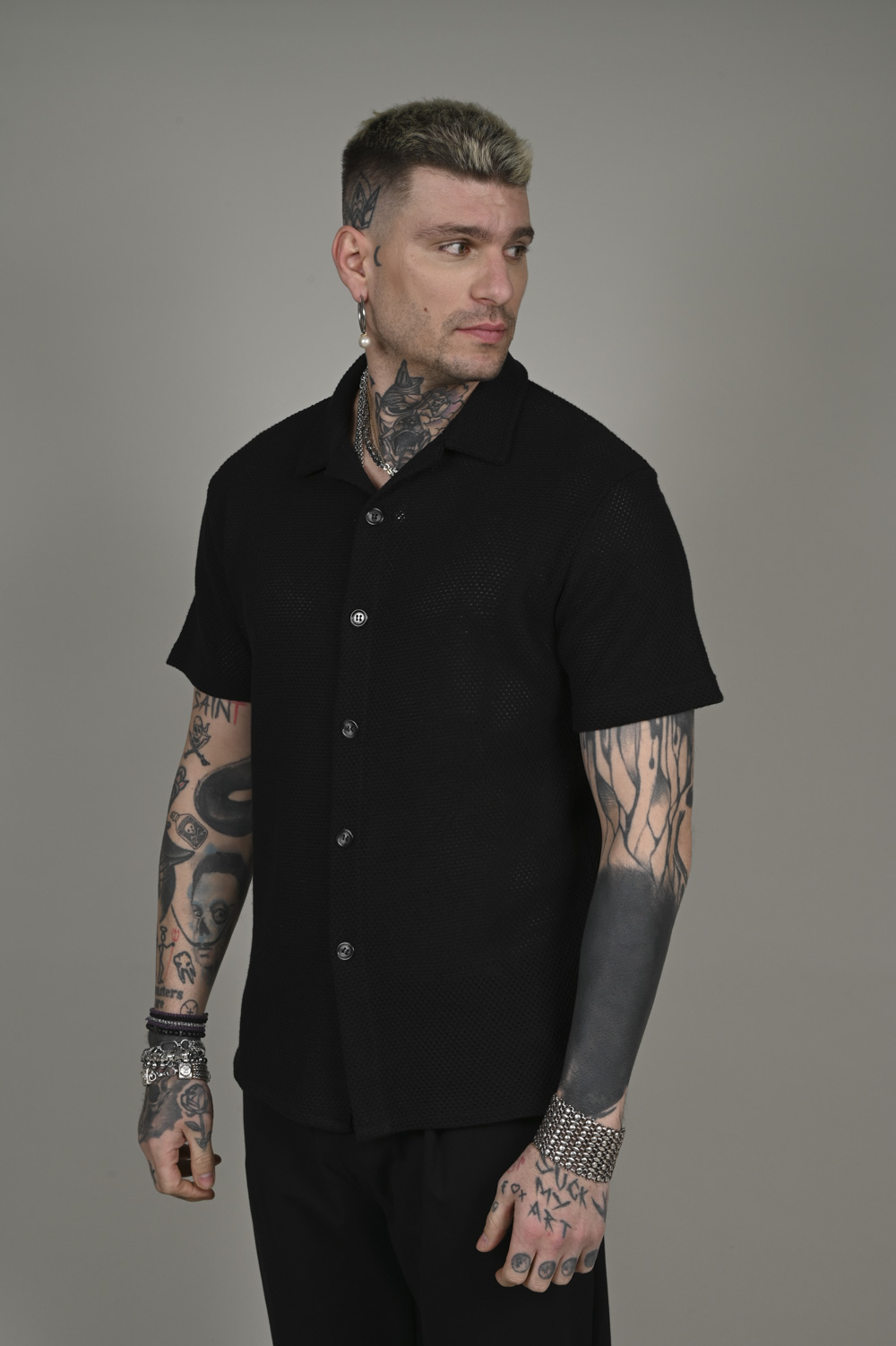 Ανδρικό πουκάμισο με κοντό μανίκι, ανοιχτό γιακά, κλείσιμο μπροστά με κουμπιά και κανονική εφαρμογή. Μπορεί να συνδυαστεί και σαν ζακέτα ανοιχτό με t-shirt.