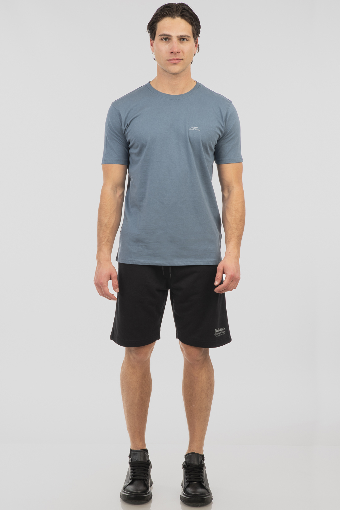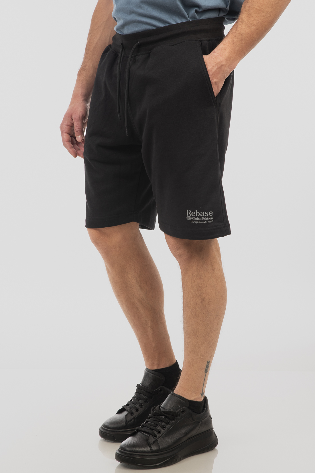 Ανδρική βερμούδα terry fleece με μικρό print, λάστιχο στη μέση και κορδόνι προσαρμογής.