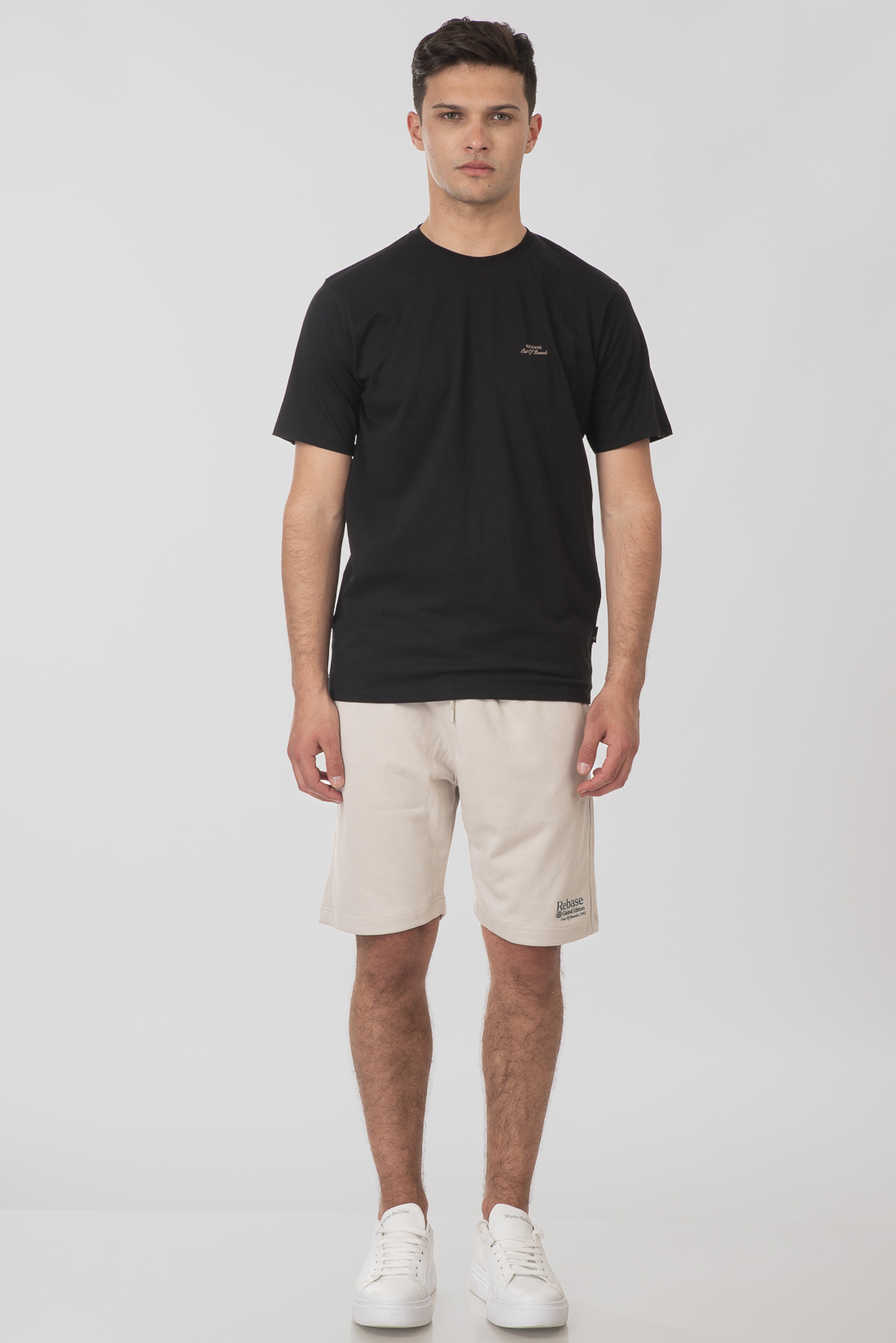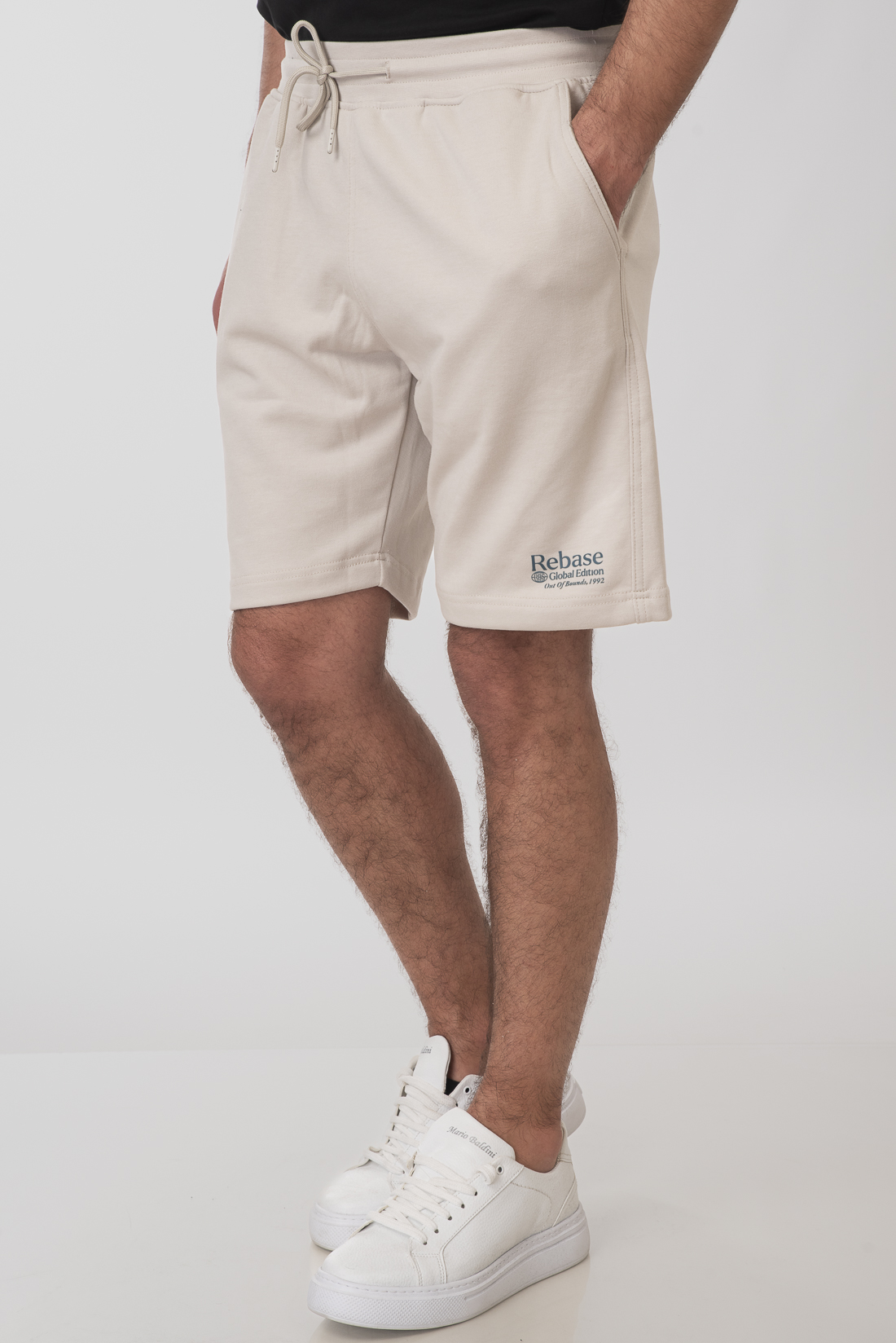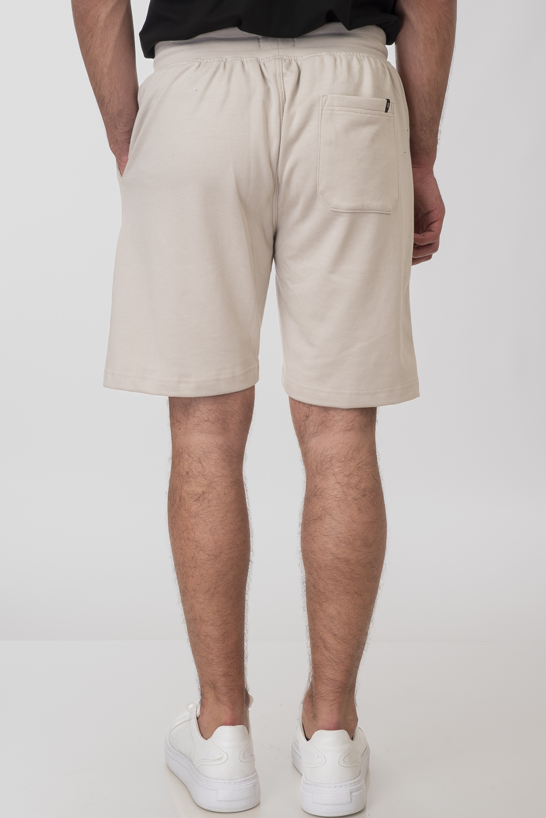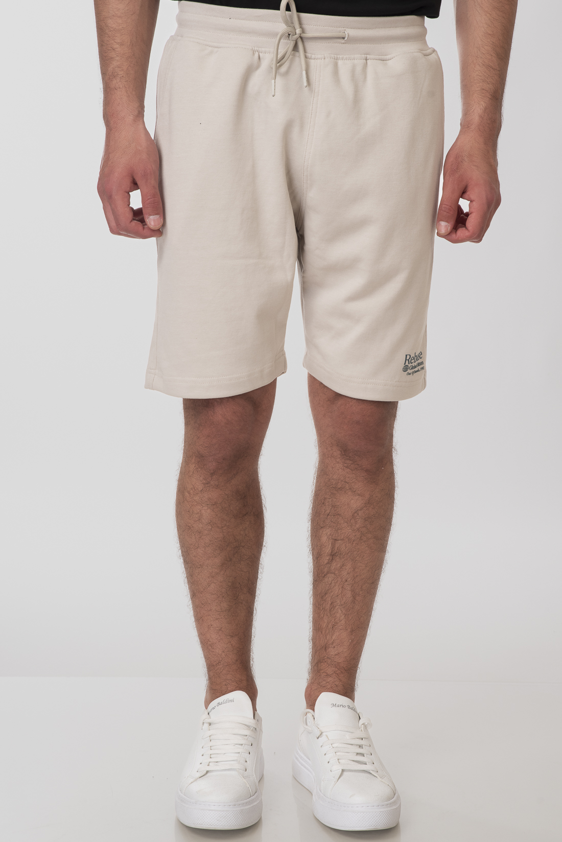 Ανδρική βερμούδα terry fleece με μικρό print, λάστιχο στη μέση και κορδόνι προσαρμογής.