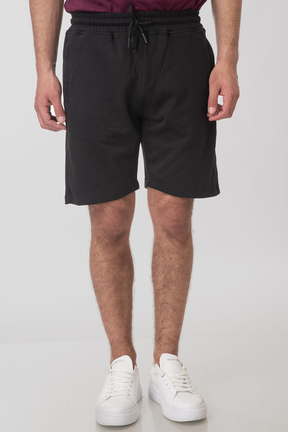 Ανδρική βερμούδα terry fleece με τσέπες που κλείνουν με φερμουάρ, λάστιχο στη μέση και κορδόνι προσαρμογής.