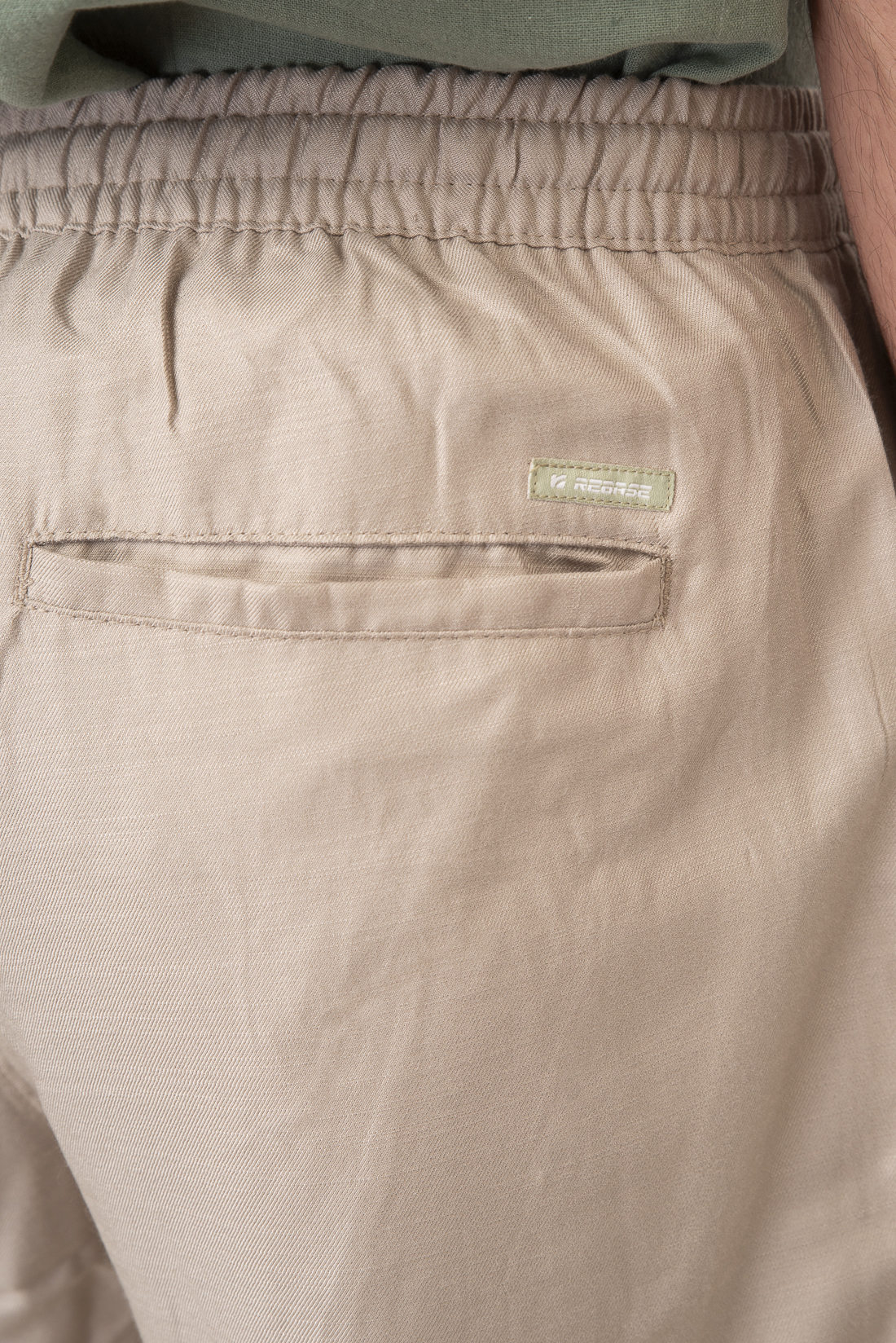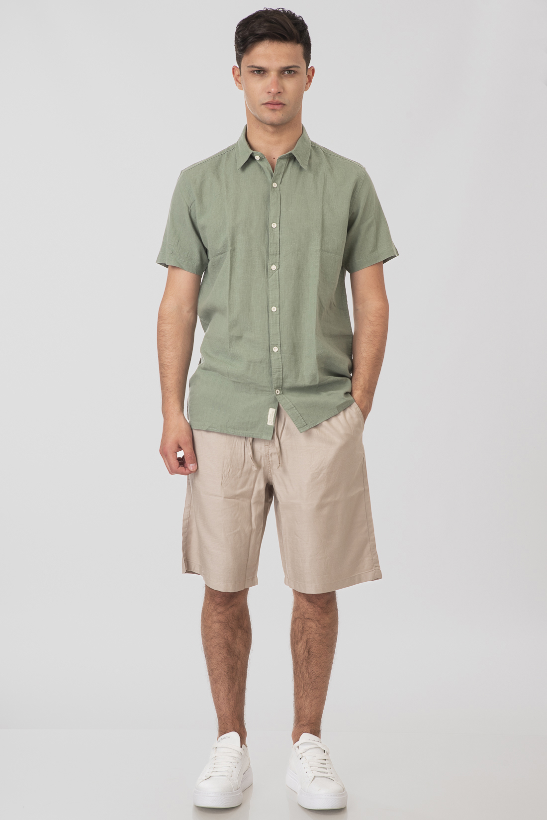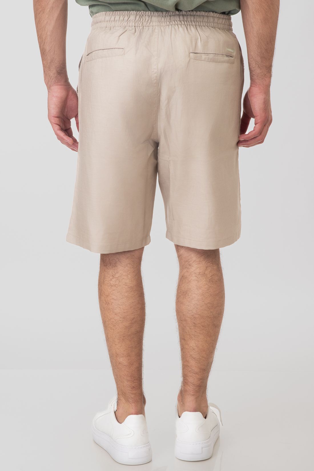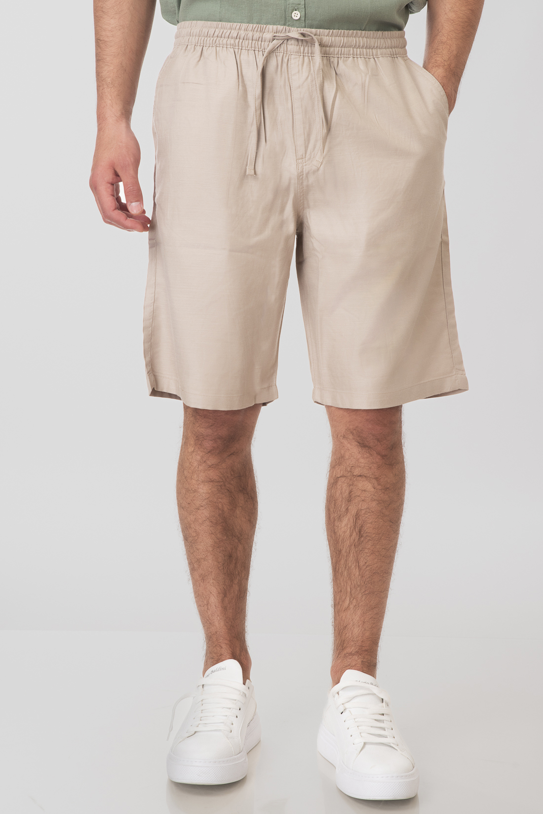 Ανδρική βερμούδα λινή, με λάστιχο στη μέση με κορδόνι προσαρμογής και κανονική εφαρμογή.