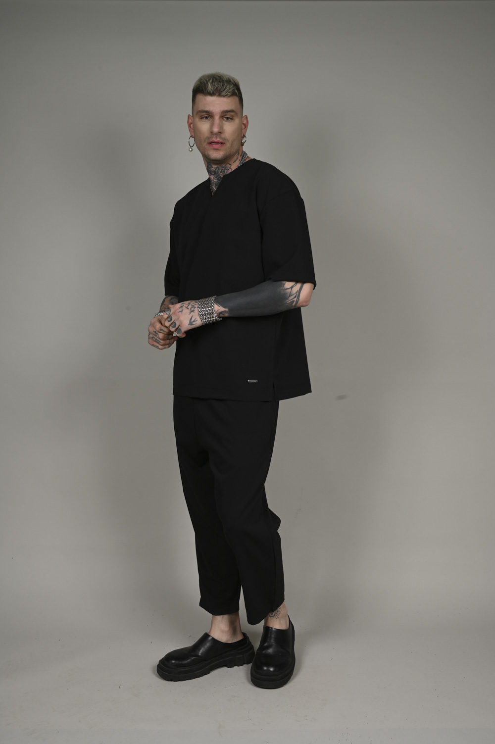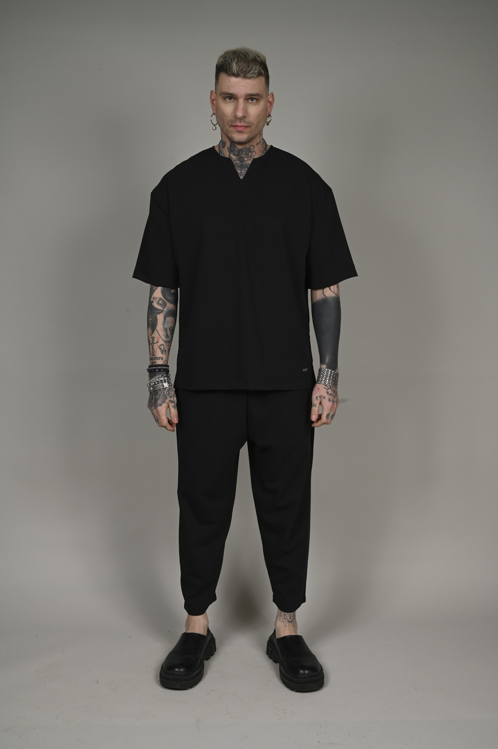 Ανδρικό παντελόνι αστραγάλου, βαμβακερό loose fit με λάστιχο στη μέση και κορδόνι προσαρμογής.