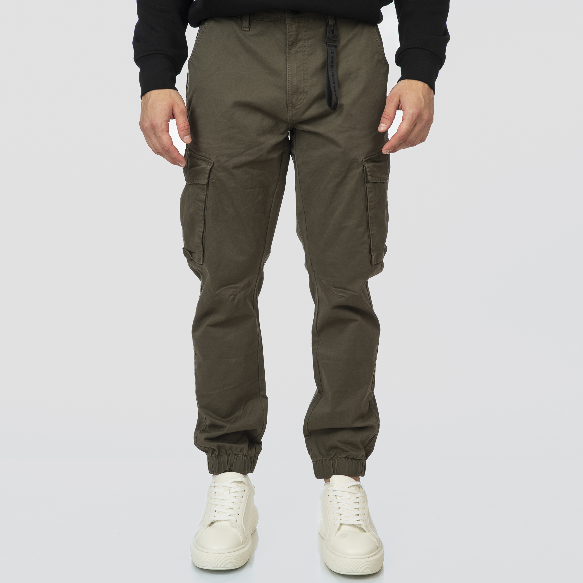 Ανδρικό παντελόνι cargo με λάστιχο στο τελείωμα και κανονική εφαρμογή.