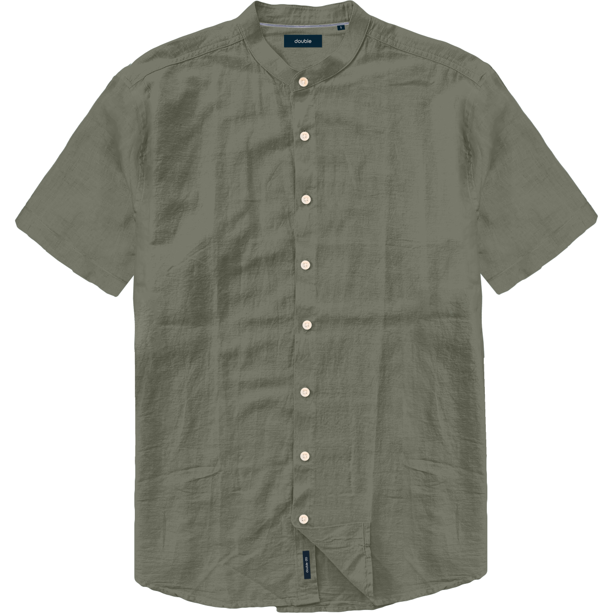 Plus size ανδρικό πουκάμισο λινό με κοντό μανίκι, μάο γιακά, κλείσιμο μπροστά με κουμπιά και κανονική εφαρμογή.